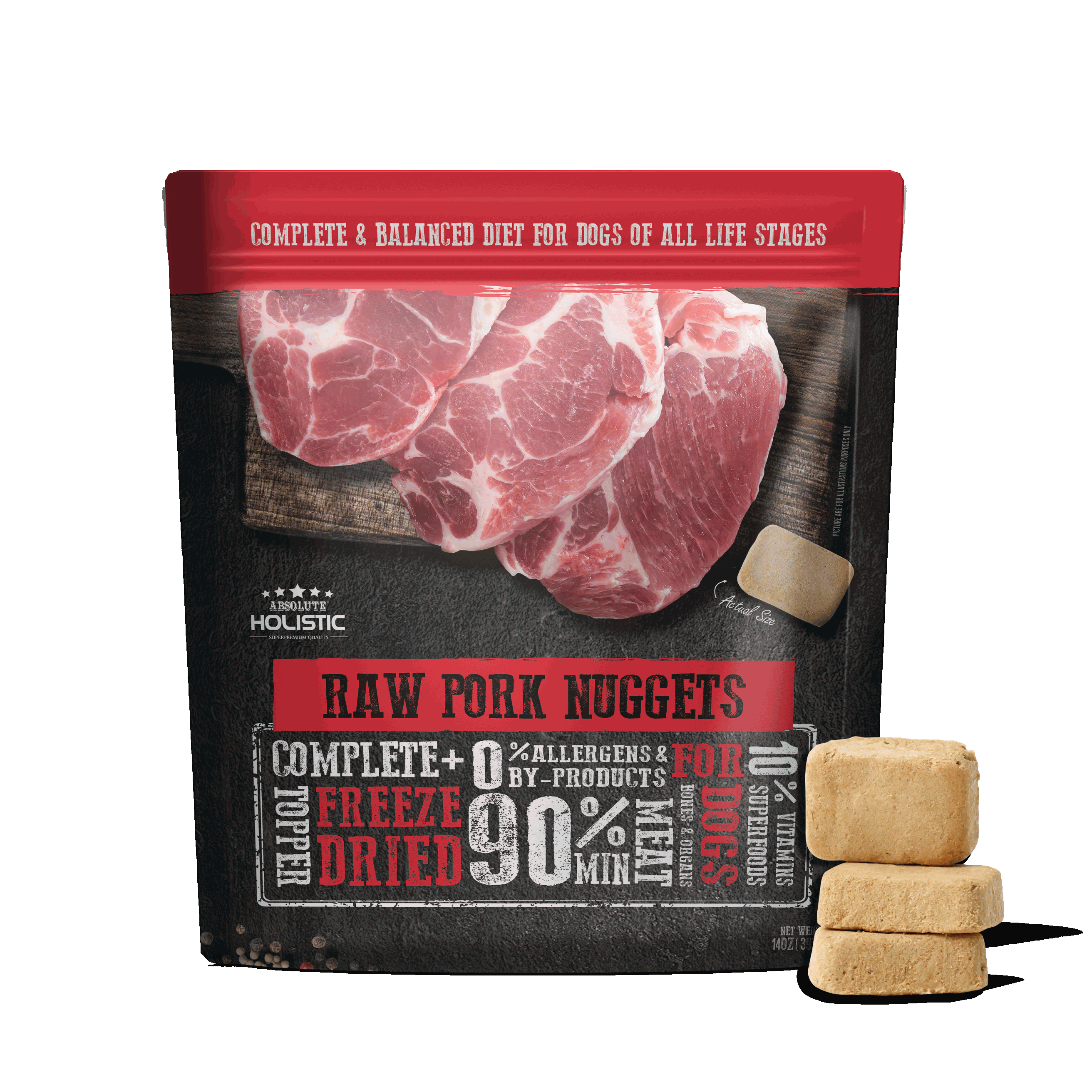 AAFCO dog food nutritional fact: Absolute Holistic® Raw Pork Nuggets for dogs is formulated to meet the nutritional levels established by the AAFCO dog food nutrient profiles for all life stages.