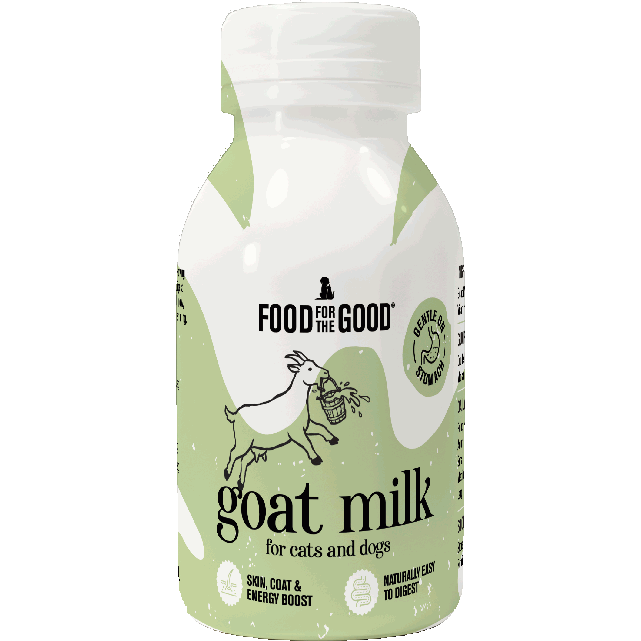 Food For The Good Goat Milk is the tummy loving, good vibes sip for sensitive pets - easy to digest, packed with vitamins B & E for energy and glow, boosting hydration and keeping their coats shining.
