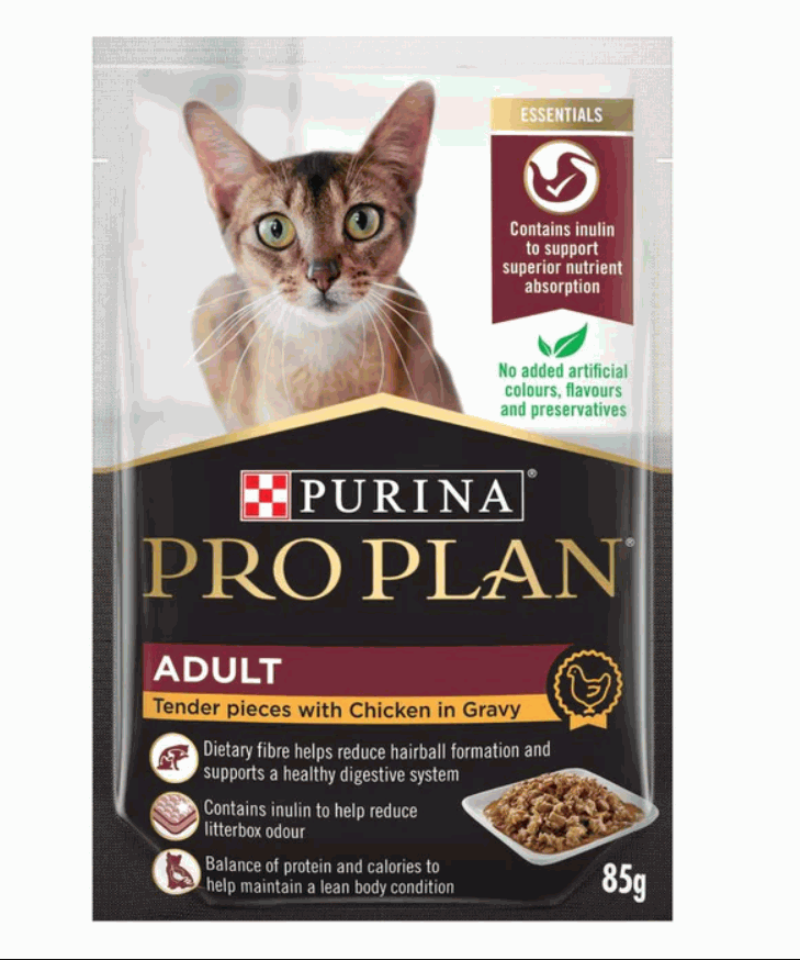 PRO PLAN Adult Chicken in Gravy Wet Cat Food delivers complete and balanced nutrition and is formulated to meet the nutritional levels established by AAFCO for growth and reproduction.