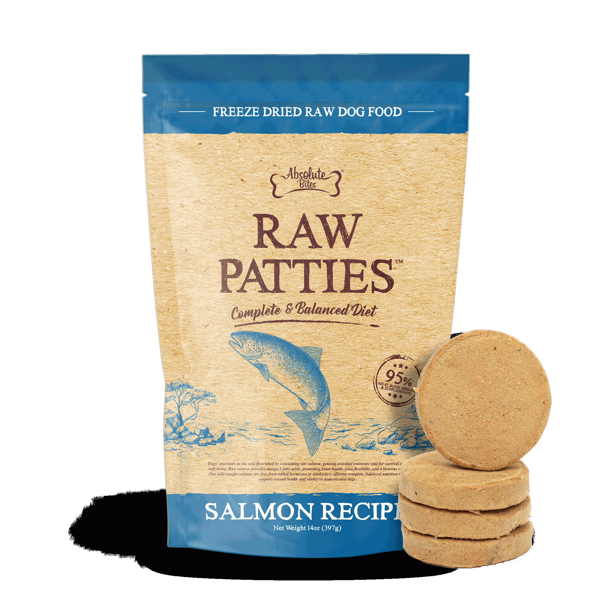 Absolute Bites® Raw PattiesTM Salmon Recipe For Dogs is formulated to meet the nutritional levels established by the AAFCO Dog Food Nutrient Profiles for all life stages.
